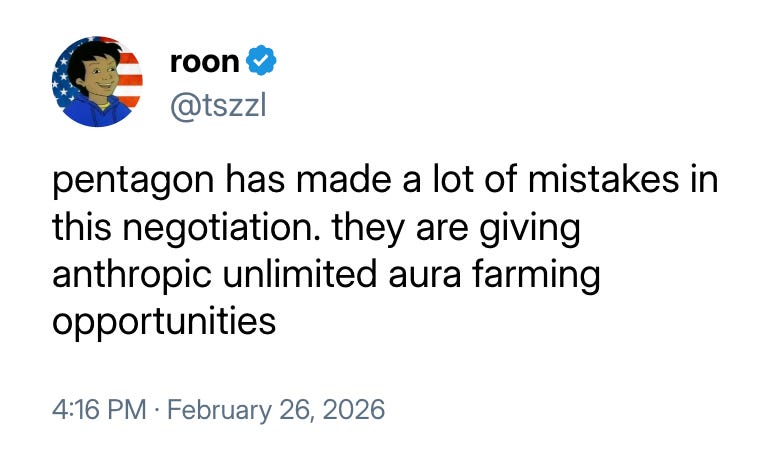 The revenue growth justifying each of the labs’ valuations lives in exactly the use cases where safety review is slowest and most likely to delay a launch8 and while ideology is great, as we’ve seen, nothing threatens talent moats like bad vibes or a feeling of under-execution, which will be more clear than ever as each labs’ stock trades second by second.9